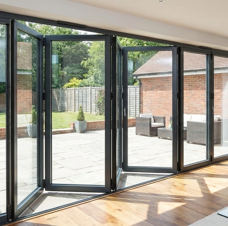 3. Bi-Fold (Slide & Fold) Doors The ultimate luxury statement. These doors fold back completely against the wall, opening up the entire aperture. Perfect for connecting living rooms to gardens or patios.